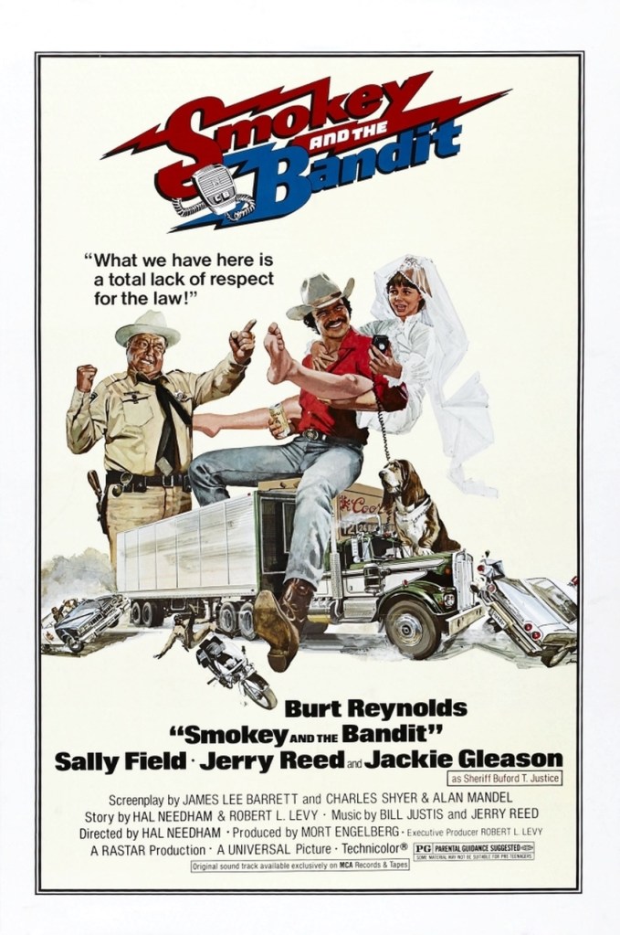 So here’s the deal. Burt Reynolds plays this southern hotshot named “Smokey” who runs interference in his Trans Am for his truck driver friend “Cledus”…because evidently the boys are thirsty in Atlanta and there’s this beer in Texarkana, and they intend to bring it back no matter what it takes. But not if the ridiculously named “Sheriff Buford T. Justice” played by Jackie Gleason can stop them first! Because it’s like, illegal to move beer across state lines without a permit or something, or at least it was in the 70s.